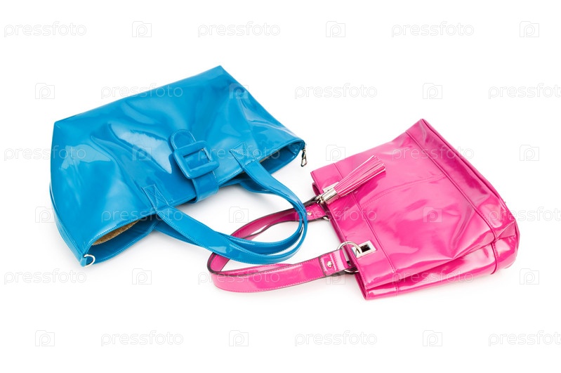 Розовая и голубая женские сумки на белом фоне