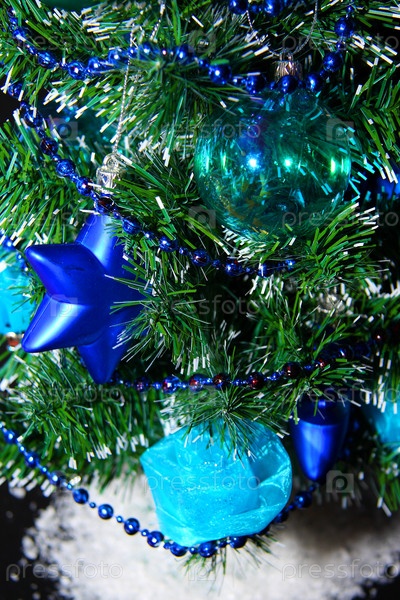 Украшенные игрушками ветви елки