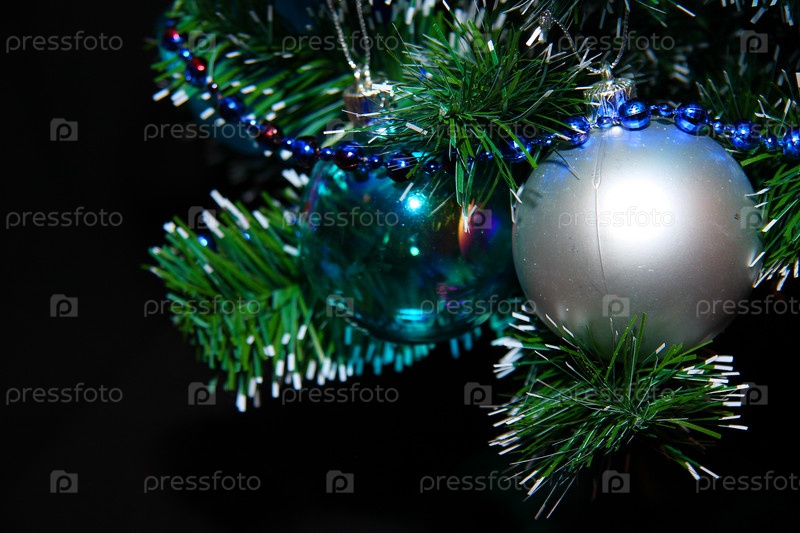 Украшенные игрушками ветви елки