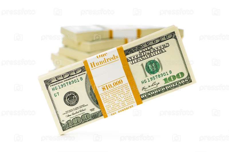 Пачка долларов на белом фоне