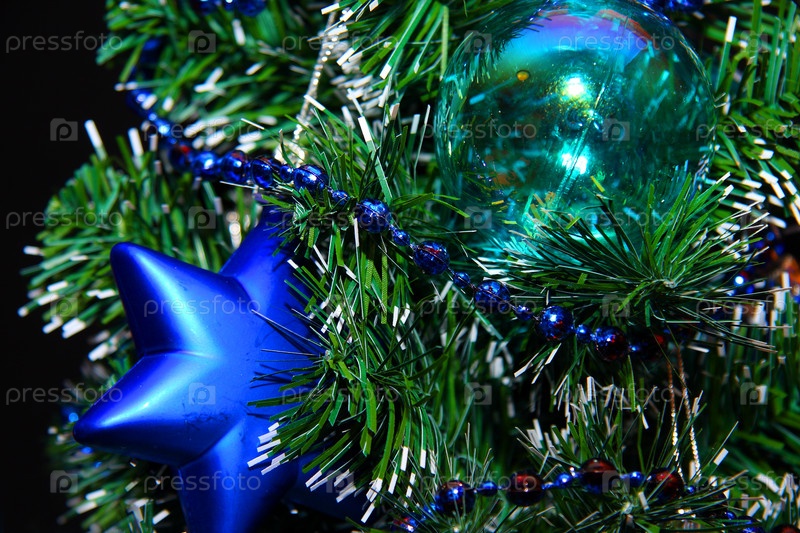 Украшенные игрушками ветви елки