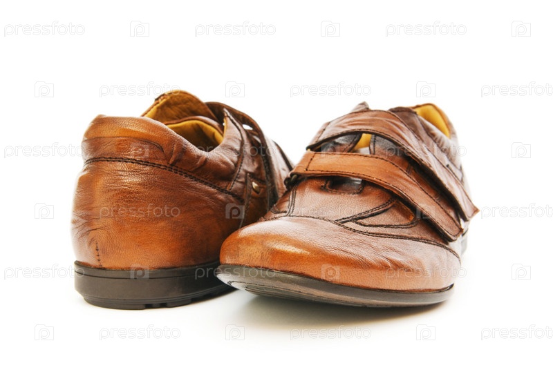 Коричневые мужские ботинки на белом фоне