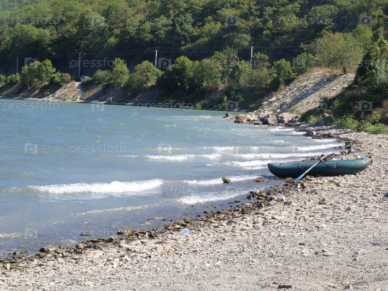Надувная лодка на каменистом берегу