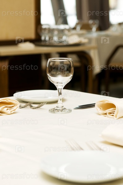 Бокал на накрытом столе