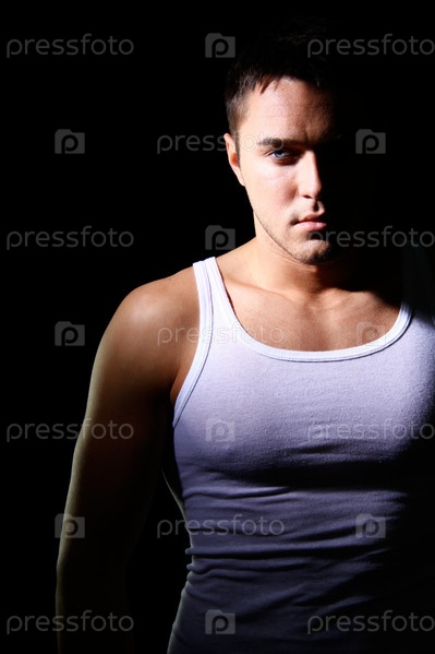 Привлекательный мужчина в майке крупным планом