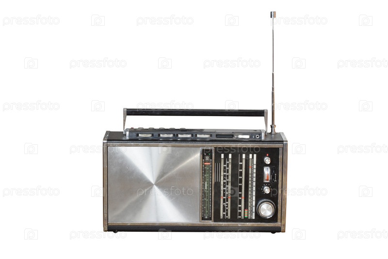 Старый радиоприемник на белом фоне