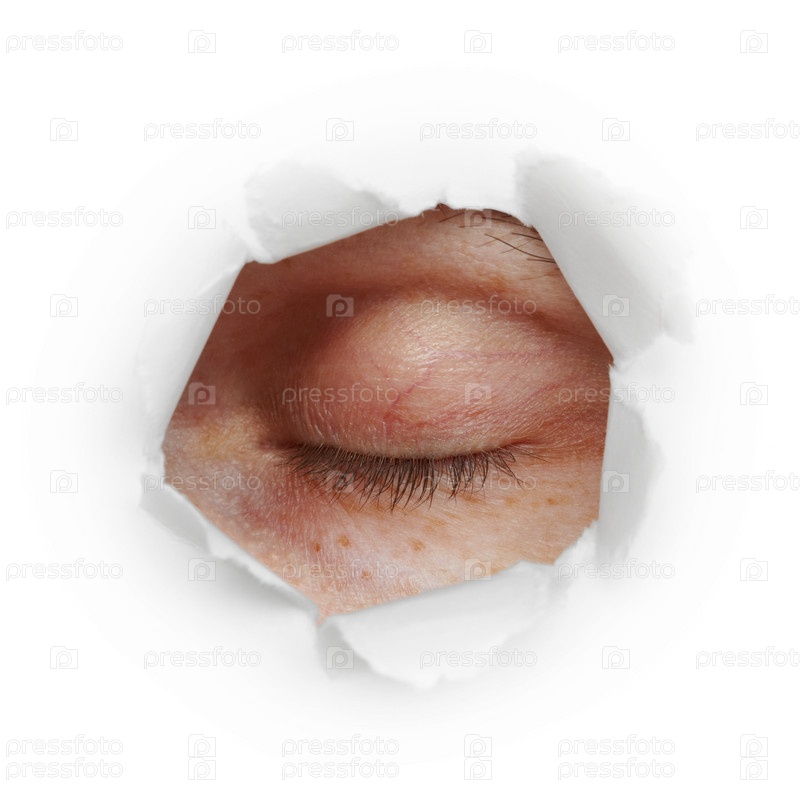 Закрытый человеческий глаз в дыре