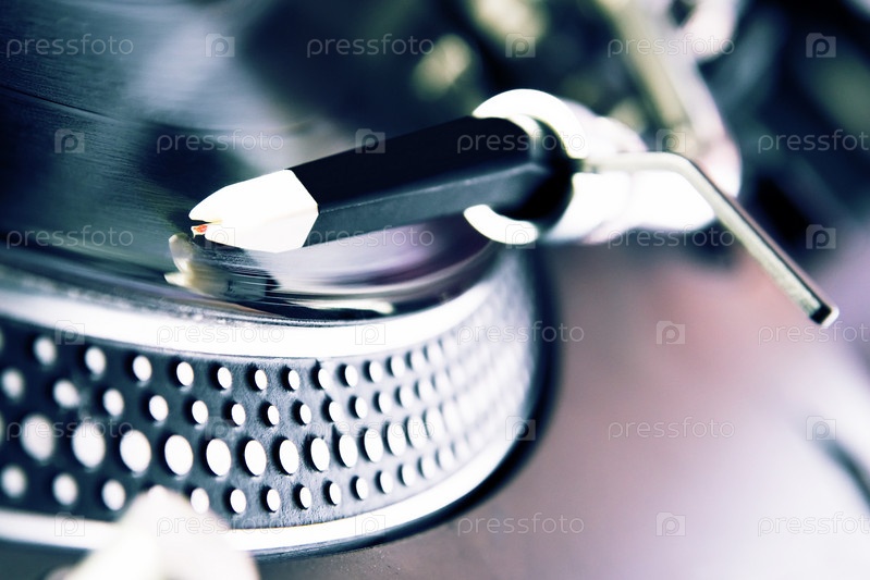 Пластинка на проигрывателе. Крупный план