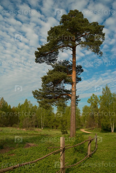 Высокая сосна у забора