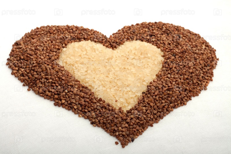 Большое сердце из гречневой и рисовой крупы крупным планом