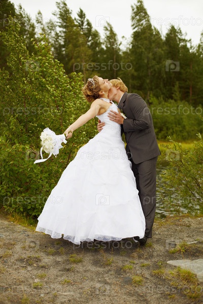 Свадебный поцелуй на природе