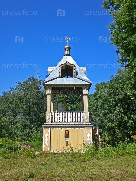 Усадьба Тютчева, колокольня на фоне голубого неба