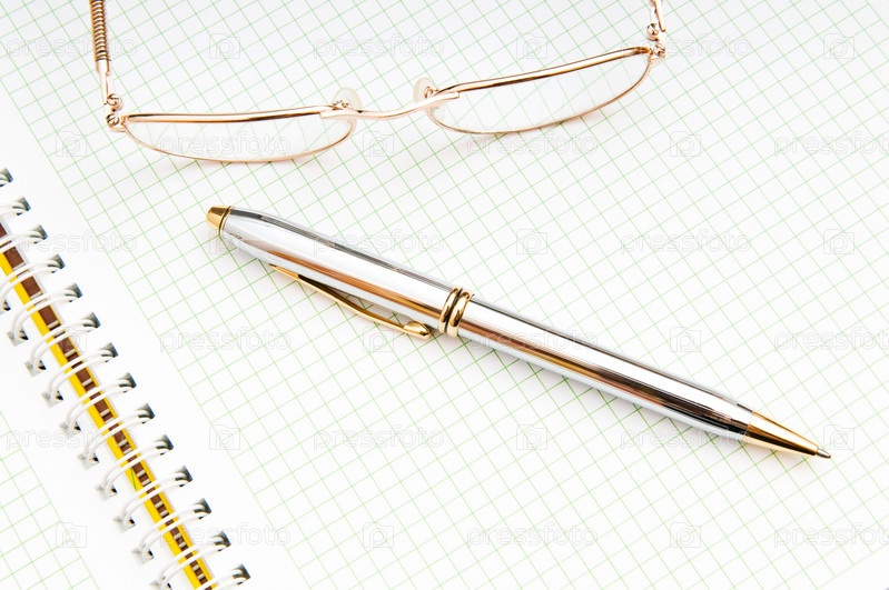 Ручка и очки на странице тетради