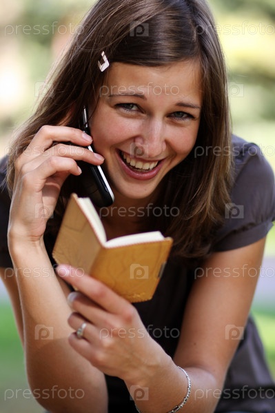 Девушка с блокнотом и телефоном