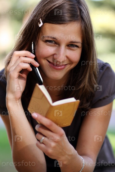 Девушка с блокнотом и телефоном