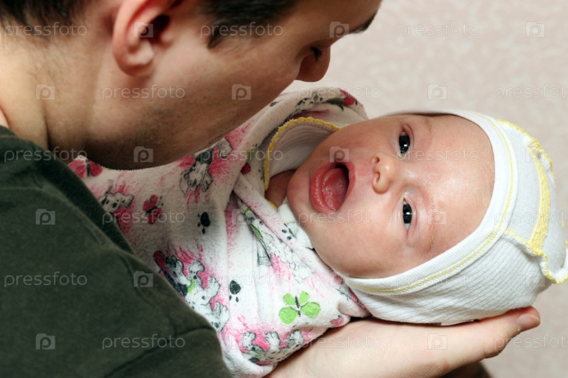 Мужчина держит кричащего младенца на руках