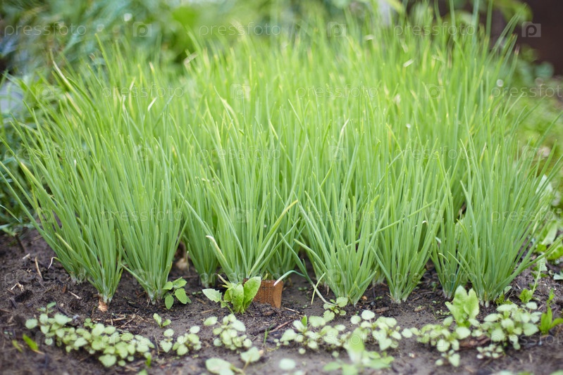 Зеленый лук на грядке