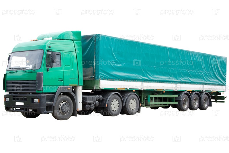 Зеленый грузовик на белом фоне