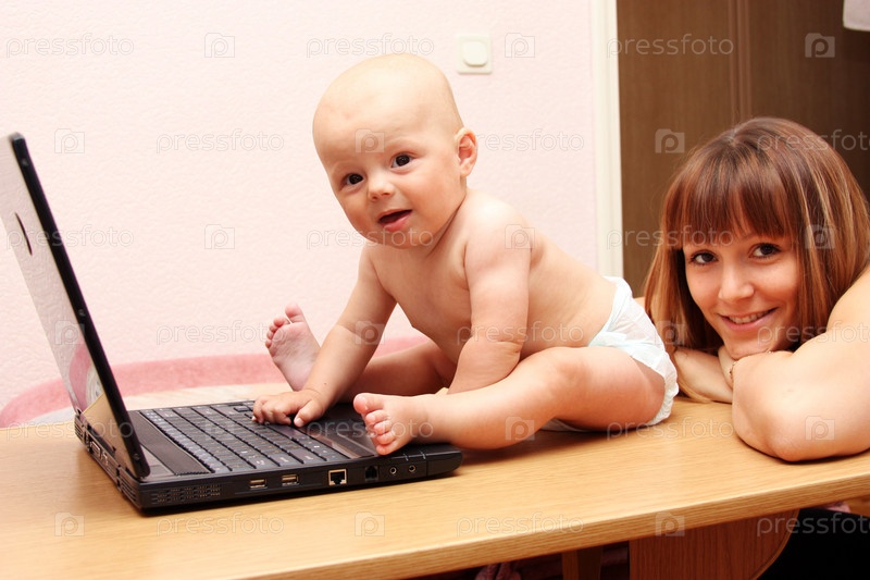 Мама посадила малыша за ноутбук