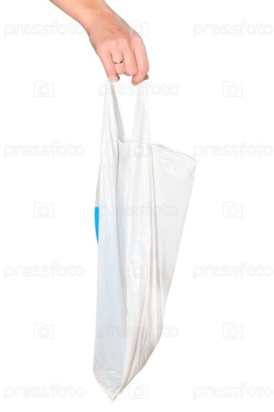 Полиэтиленовый пакет в руке на белом фоне