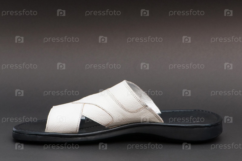 Белый мужской шлепанец на сером фоне
