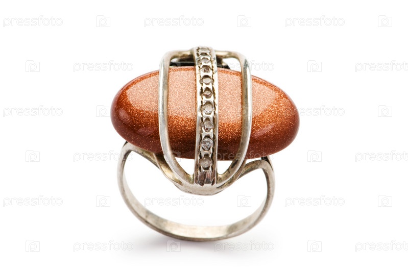 Женское кольцо с камнем на белом фоне