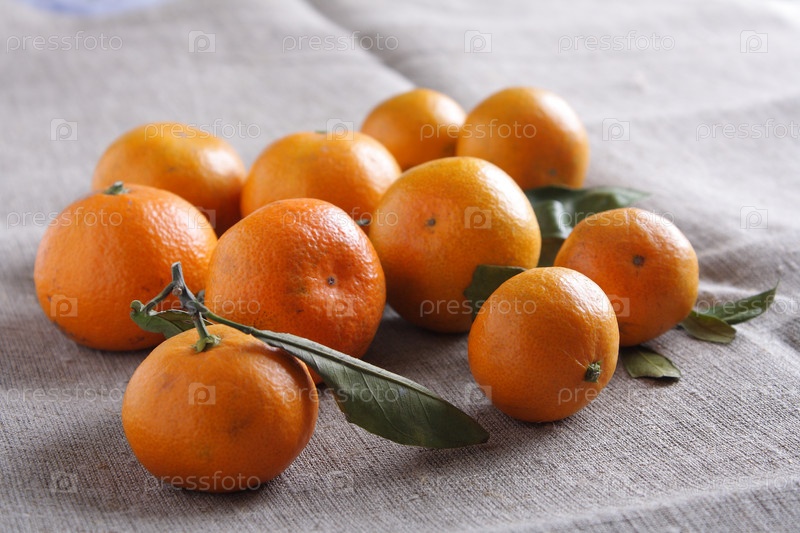 Спелые мандарины на холсте