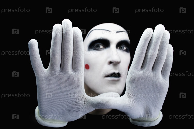 Портрет мима, изолированный на черном фоне
