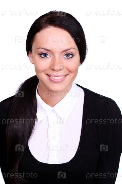 Портрет улыбающейся женщины на белом фоне