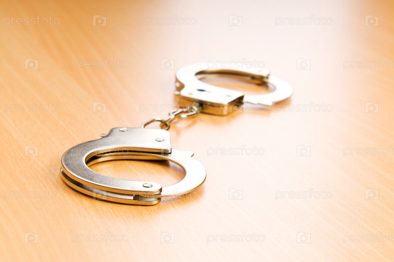 Наручники на деревянной поверхности