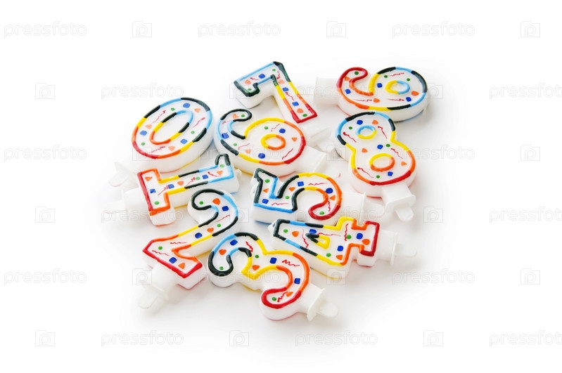 Праздничные свечи в виде цифр, изолированные на белом фоне. Крупный план