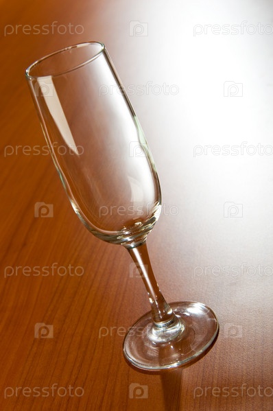Пустой бокал на коричневом столе