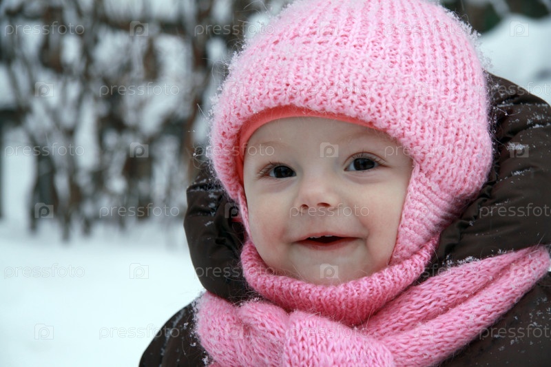 Счастливый ребенок на улице зимой