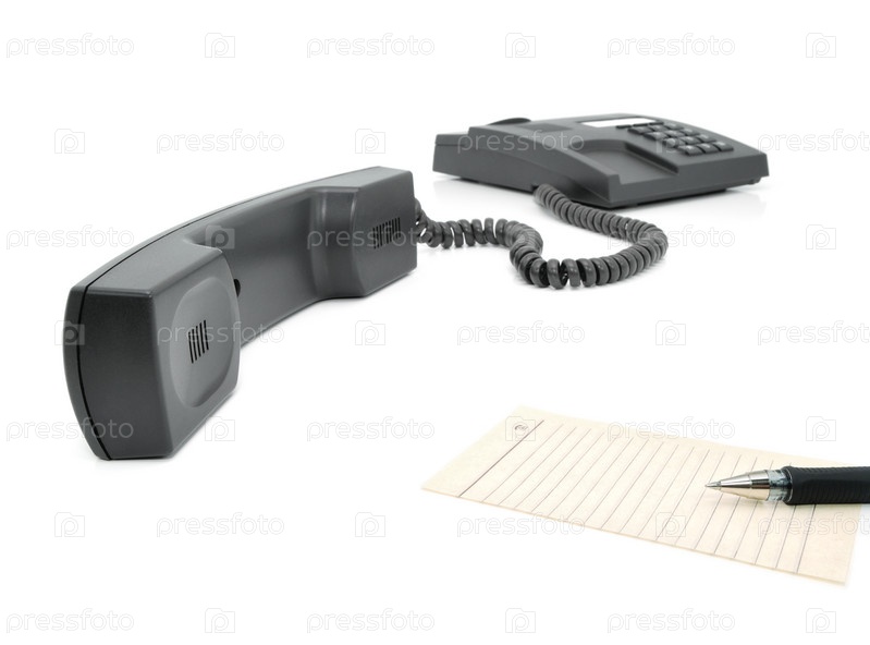 Черный телефон и ручка с листом
