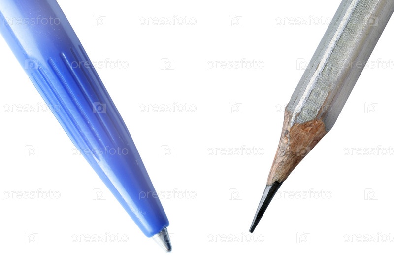 Ручка и карандаш на белом фоне