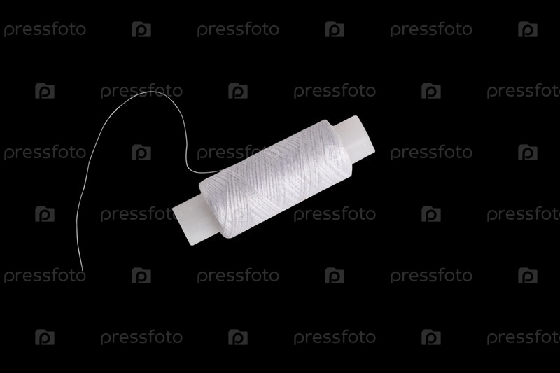 Катушка белых ниток на черном фоне