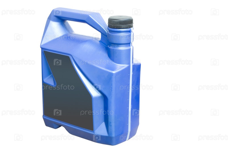 Канистра с моторным маслом на белом фоне