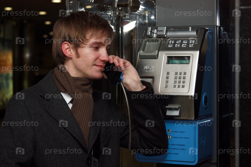 Мужчина разговаривает по таксофону