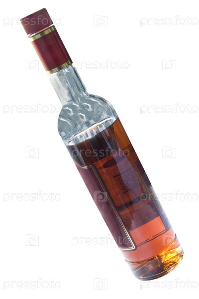 Бутылка коньяка под белом фоне