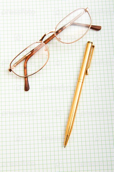 Очки и ручка на листе бумаги