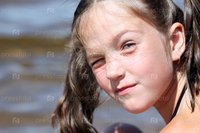 Девочка прищурилась на солнце