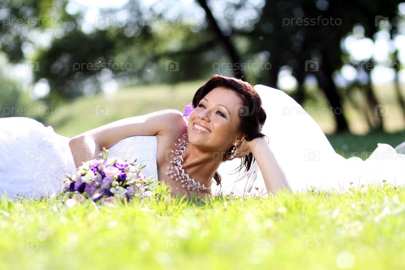 Портрет невесты в парке на траве