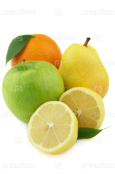 Свежие фрукты на белом фоне