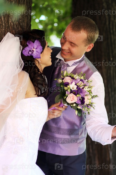 Жених и невеста в парке