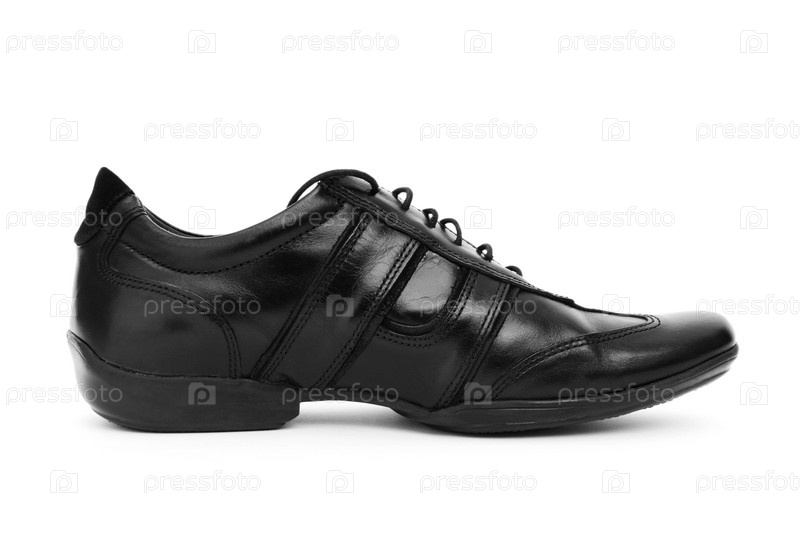 Черный блестящий ботинок, изолированный на белом фоне