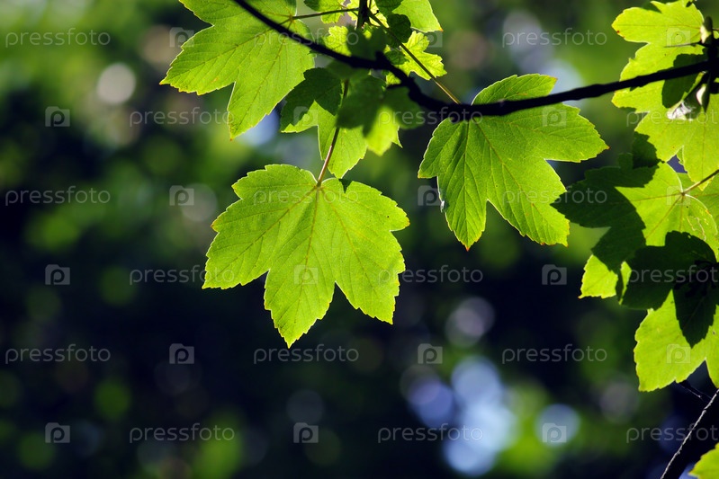 Зеленые листья клена в городском парке в весенний день
