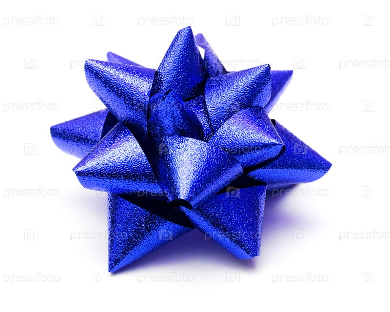 Синий бантик для подарка, изолированный на белом фоне