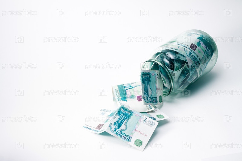 Открытая банка с деньгами