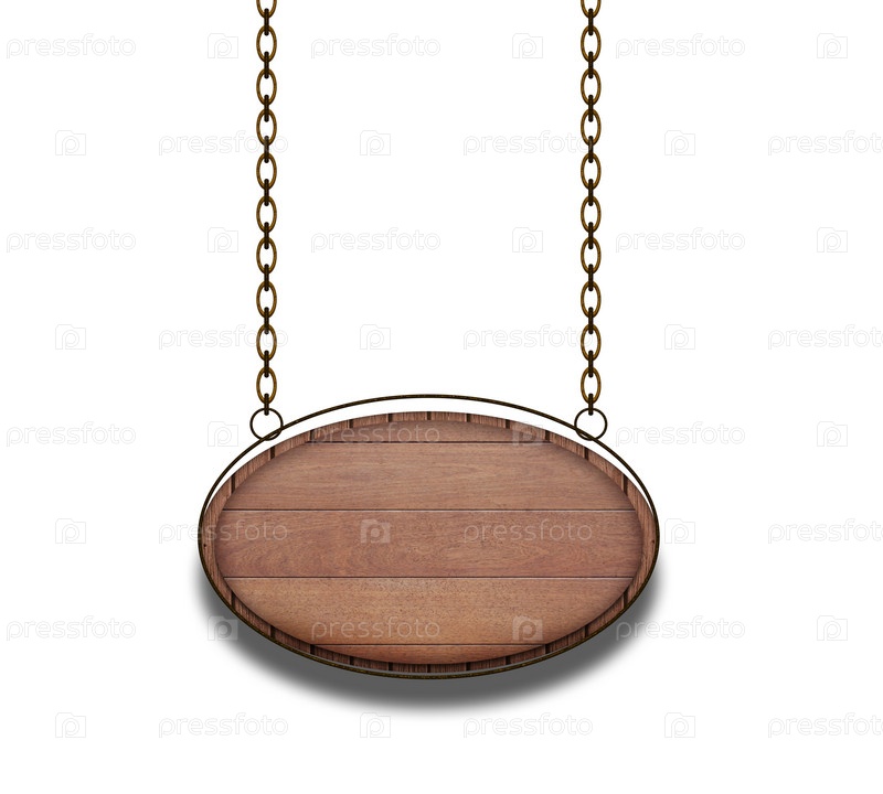 Деревянный овал, висящий на цепях