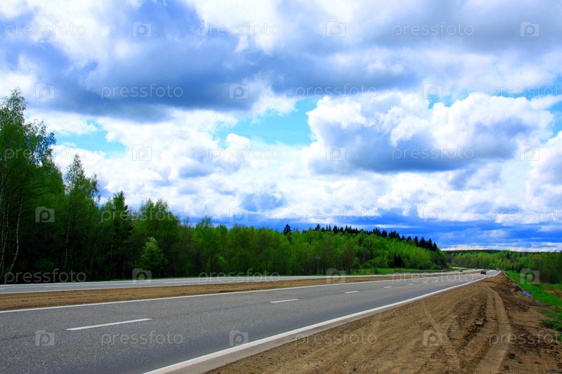 Ровная дорога под облачным небом